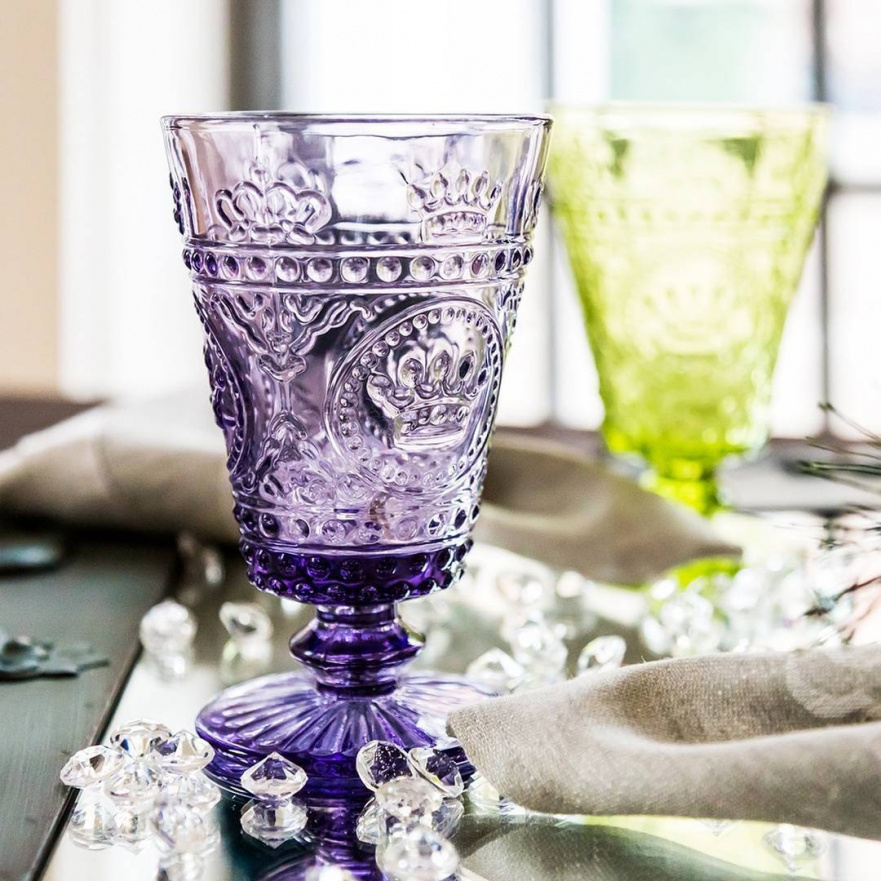Фужеры Ричард изготовлены из светопрозрачного, крашенного в массе, лакированного толстостенного стекла, свойства которого близки к хрусталю. Обильный узор чутко реагирует на свет - кубок переливается и отсвечивает яркими бликами. В свете люстр атмосфера застолья наполняется торжеством, при вечернем свете - согревает романтикой.