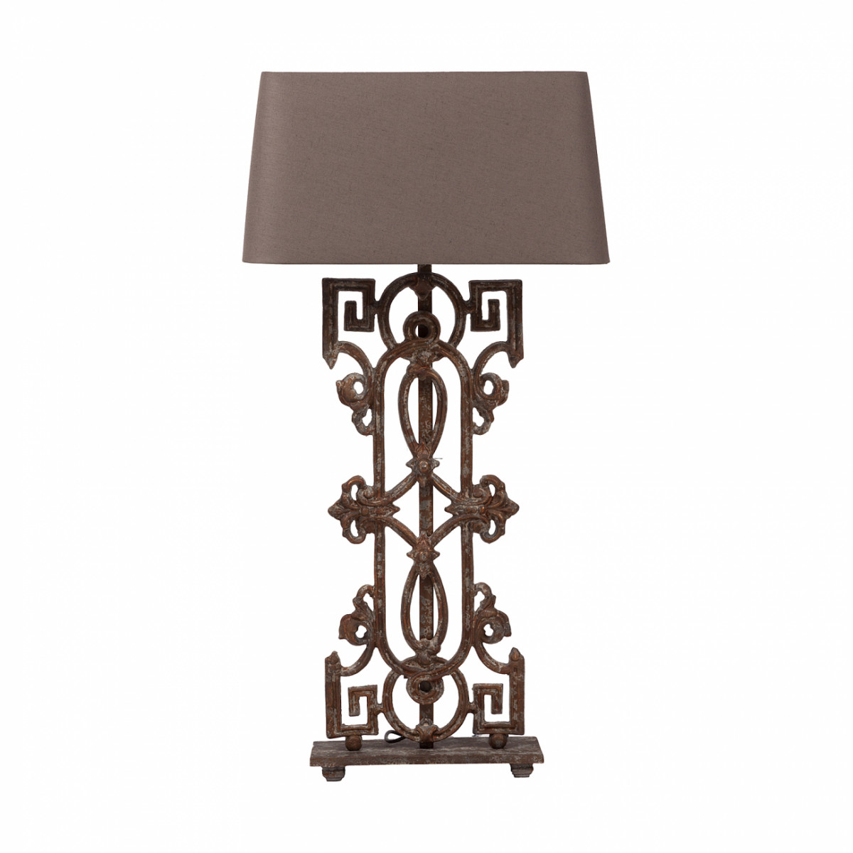Оригинальная настольная лампа Sevilia с необычным металлическим ажурным корпусом и тканевым абажуром бежевого цвета выполнена в серо-коричневом тоне, создаст уютную обстановку в доме. Прекрасно подойдет в качестве подарка. Шикарным дополнением к ней станет покупка в нашем интернет-магазине напольного светильника Greek Key Baluster в таком же стиле. Предназначена для использования со светодиодными лампами.