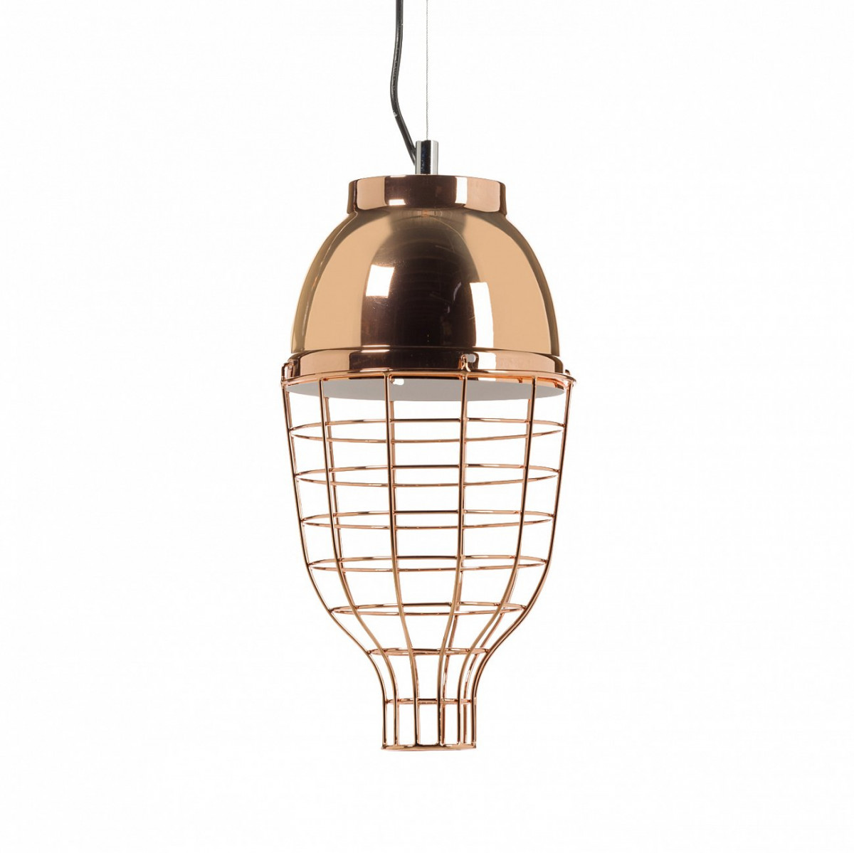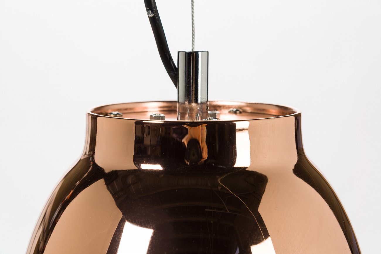 Название светильника можно перевести как «ослепительный блеск» — металлический абажур и правда ослепляет своим сиянием. Оформление в цвете «розовое золото» еще больше усиливает этот эффект. Необычный декор в виде клетки и яркое цветовое оформление уравновешиваются симметрией формы и строгостью линий. Все вместе создает образ некоего технологичного солнца и напоминает яркие ретросветильники 60-х.